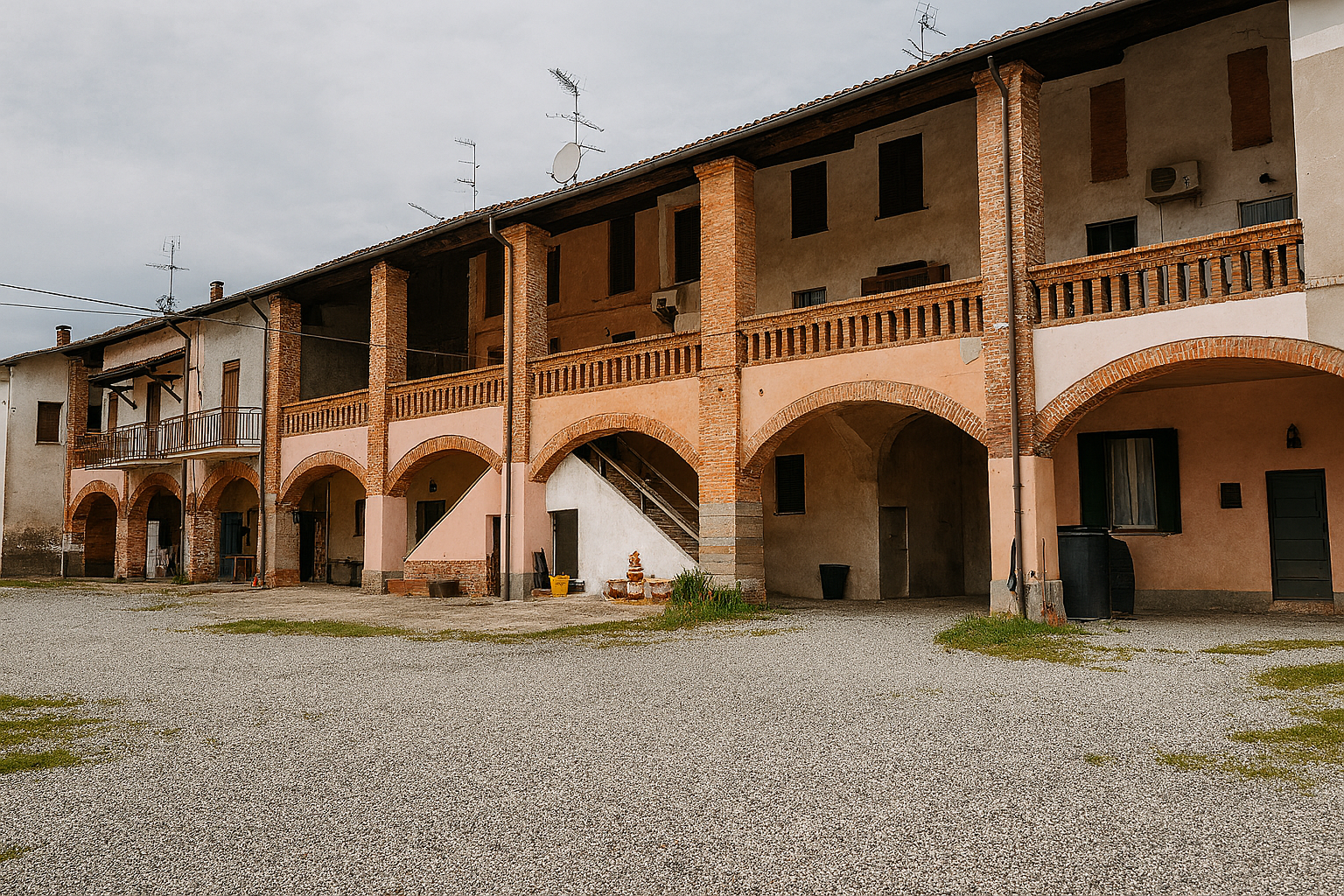 Il centro storico di Colnago si sviluppa in numerose corti rustiche, ben rappresentate da quelle di San Giuseppe e della Madonna, costruite nell’Ottocento. Come le cascine, così i cortili contadini assumono spesso il nome di chi li possiede, di chi li abita oppure il nome del Santo che veglia sulla quotidiana fatica degli abitanti. È quest’ultimo il caso dei due citati cortili di Colnago: le edicole dedicate a San Giuseppe e alla Madonna stanno al centro della corte, ancora oggi fatte segno di speciale venerazione dai residenti che ne curano il decoro. L’architettura è semplice, eppure efficace: al piano terreno insistevano le cucine assegnate alle singole famiglie di contadini residenti; al piano superiore le camere da letto. Sotto il portico, le attività rurali si alternavano alla recita del rosario e alle chiacchiere di cortile: non era infrequente che gli abitanti mangiassero qui, all’aperto e sugli spazi comuni, specie quando la casa - e la cucina soprattutto - era ingombra dei bachi da seta, allevati dai contadini a margine dell’attività agricola. Dal lato opposto affacciavano sul cortile le stalle sormontate dai fienili: il bue o il cavallo per trainare l’aratro; la mucca del latte, talora frugalmente accompagnato alla polenta quotidiana.