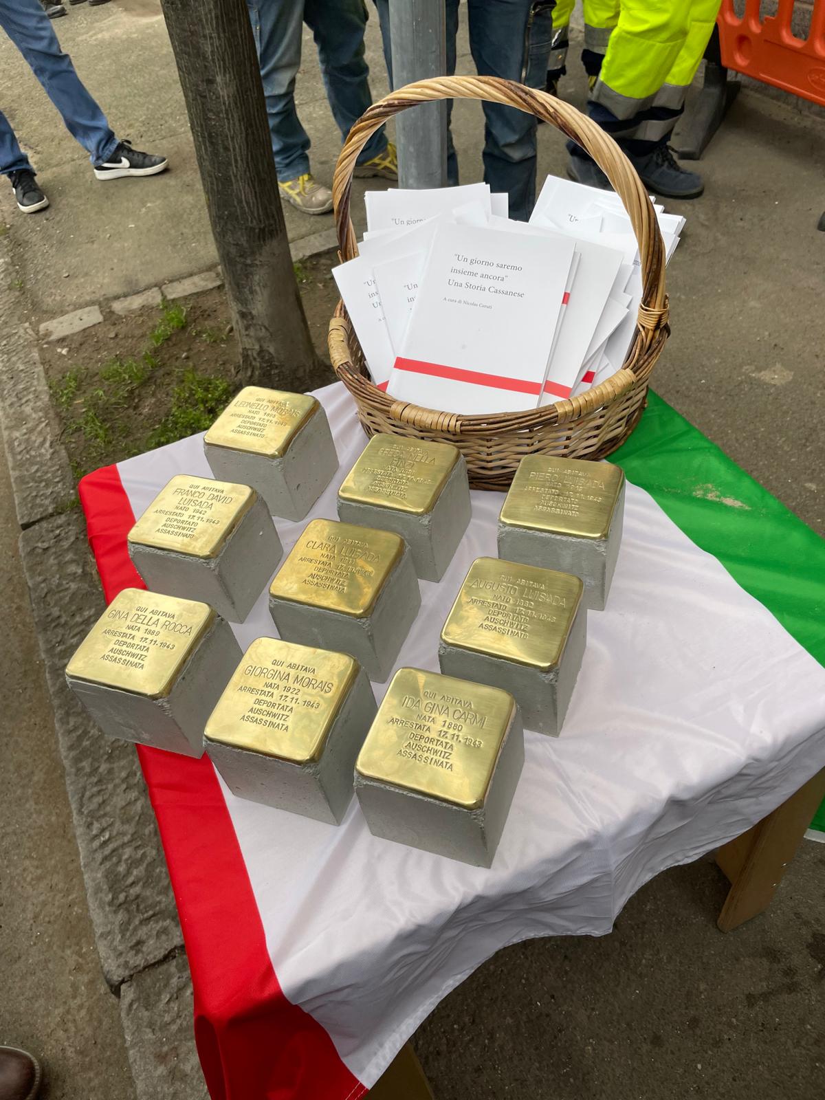 Il 27 gennaio 2022, in occasione della Giornata della Memoria, Cassano d’Adda ha scelto di legare per sempre le proprie strade al ricordo di nove cittadini deportati e uccisi ad Auschwitz nel novembre del 1943. In via Mazzini, al civico 76, sono state collocate nove pietre d’inciampo, piccoli blocchi di pietra con una piastra di ottone incisa, che custodiscono i nomi e le storie di chi fu strappato alla propria vita quotidiana e alla propria comunità.