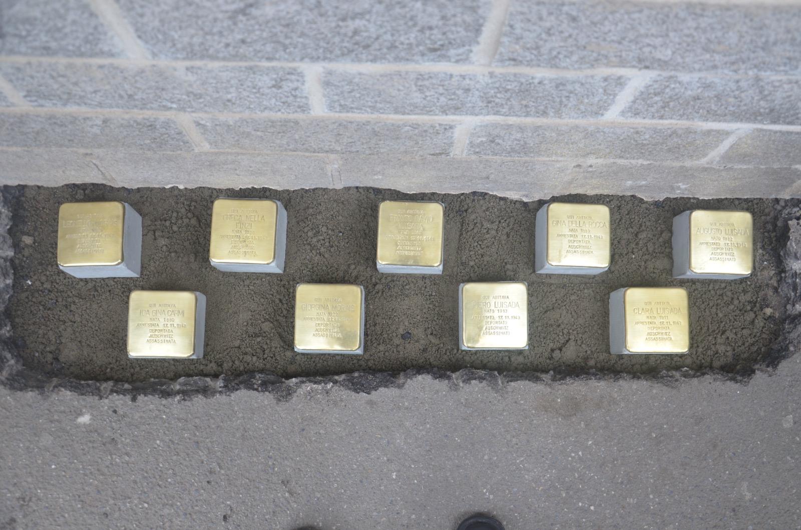 I nomi impressi nel metallo — Piero Luisada, Franco David Luisada, Augusto Luisada, Clara Luisada, Ida Gina Carmi, Greca Nella Finzi, Giorgina Morais, Leonello Morais e Gina Della Rocca — sono oggi parte del tessuto urbano di Cassano: un segno discreto ma indelebile che obbliga chi passa a chinare lo sguardo e a ricordare.
