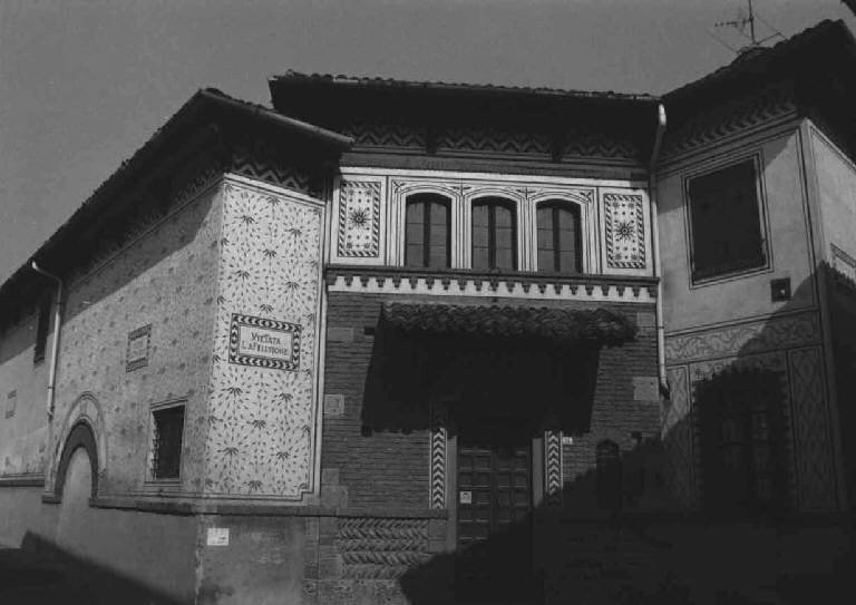 La seconda tappa lungo Via Antonio Motta è Villa Pizzi Guidoboni, una residenza del XVIII secolo, che sembra uscita da un sogno antico, trasformata nel tempo in opera d’arte in divenire. Il suo volto attuale, dalle linee neogotiche e dall’anima romantica, è il risultato di un attento restauro novecentesco che ha riscritto la sua identità, mescolando il rigore del Medioevo con l’eleganza di uno stile eclettico senza tempo. Le linee austere della facciata, appena varcato il portale, si addolciscono per fare spazio ad un mondo sospeso tra storia e bellezza. La corte nobile, cuore silenzioso dell’edificio, accoglie il visitatore con affreschi in tondi che ritraggono i volti austeri e vividi della corte sforzesca di Ludovico il Moro. Le pareti parlano un linguaggio raffinato: motivi vegetali si intrecciano a forme geometriche, tracciati con la tecnica dello sgraffito, in un equilibrio sottile tra sobrietà e ricchezza ornamentale. La visita prosegue verso la cappella privata dedicata a Santa Teresa d’Avila, un luogo d’intima spiritualità, per poi animarsi, come in un crescendo teatrale, allo spalancarsi del giardino panoramico: un angolo di paradiso in cui alberi secolari sorvegliano il lento scorrere dell’Adda e del Naviglio, fondendo natura e architettura in un abbraccio senza tempo.