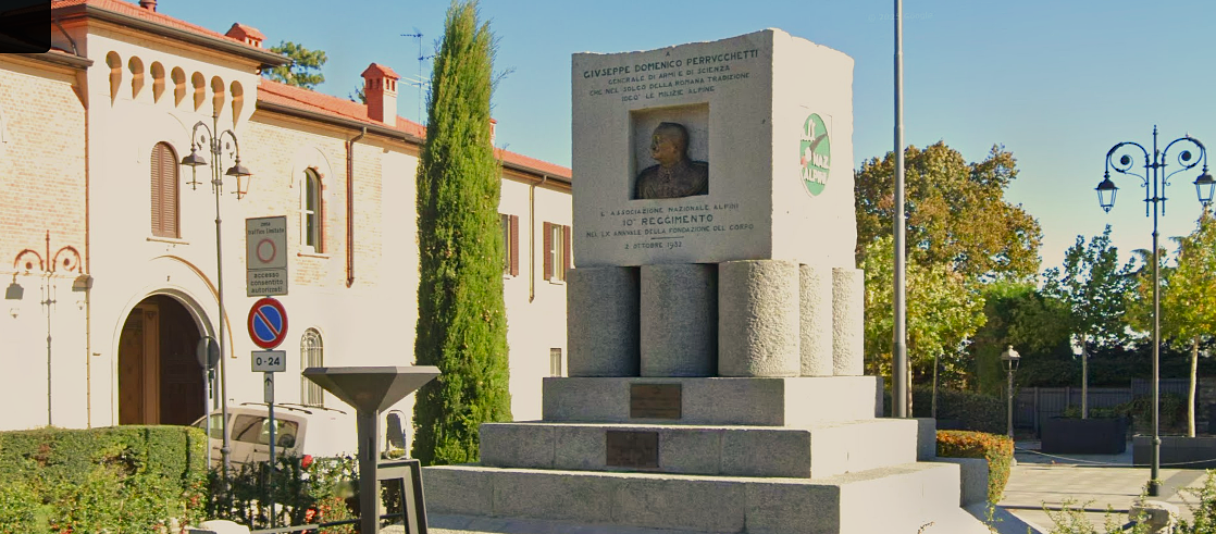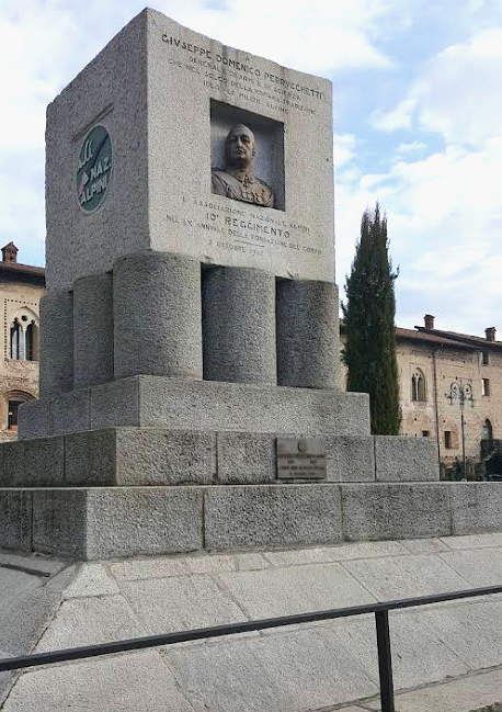 Nel 1932 Cassano dedicò un monumento celebrativo al generale Giuseppe Domenico Perrucchetti, fondatore degli Alpini, collocandolo nell’omonima piazza. Il comandante, cui il monumento rende omaggio, nacque a Cassano il 13 luglio 1839. Suo padre Giuseppe era un ingegnere sessantenne, autore della ricostruzione del ponte sul fiume e amministratore dei conti della parrocchia. Aveva 21 anni più di mamma Margherita Manzoni. Entrambi volevano che il figlio Giuseppe Domenico diventasse architetto. Abitavano al primo piano di palazzo Somaglia, l’attuale oratorio maschile; e il collegio di Cassano non distava poi molto. Lo mandarono a studiare lì oltre che al Sant’Alessandro di Bergamo, da cui tornò diplomato nel 1857. S’iscrisse allora alla facoltà di Matematica presso l’ateneo di Pavia, entrò come praticante nello studio cassanese dell’ing. Giuseppe Legnani: e d’improvviso fuggì.