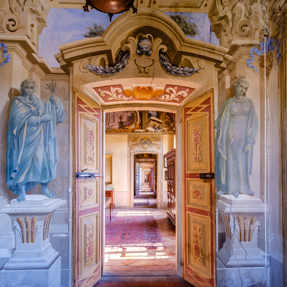 Palazzo Bassi Brugnatelli si presenta a chi lo visita nella sua duplice anima, dove l'imponenza barocca convive con l'eleganza neoclassica, offrendo ai visitatori un'esperienza unica. I suoi interni, con il piano nobile seicentesco rimasto intatto, accolgono con affreschi, soffitti a cassettoni dai decori originali e arredi d'epoca che narrano secoli di vita quotidiana. Il piano terra, invece, è un affascinante testimone dell'interior design degli ultimi duecento anni, una vera e propria galleria d'arte e storia che spazia dall'Oriente alla mondanità milanese, celebrando l'arte classica italiana e l'unità nazionale attraverso le memorie di chi ha combattuto per essa.