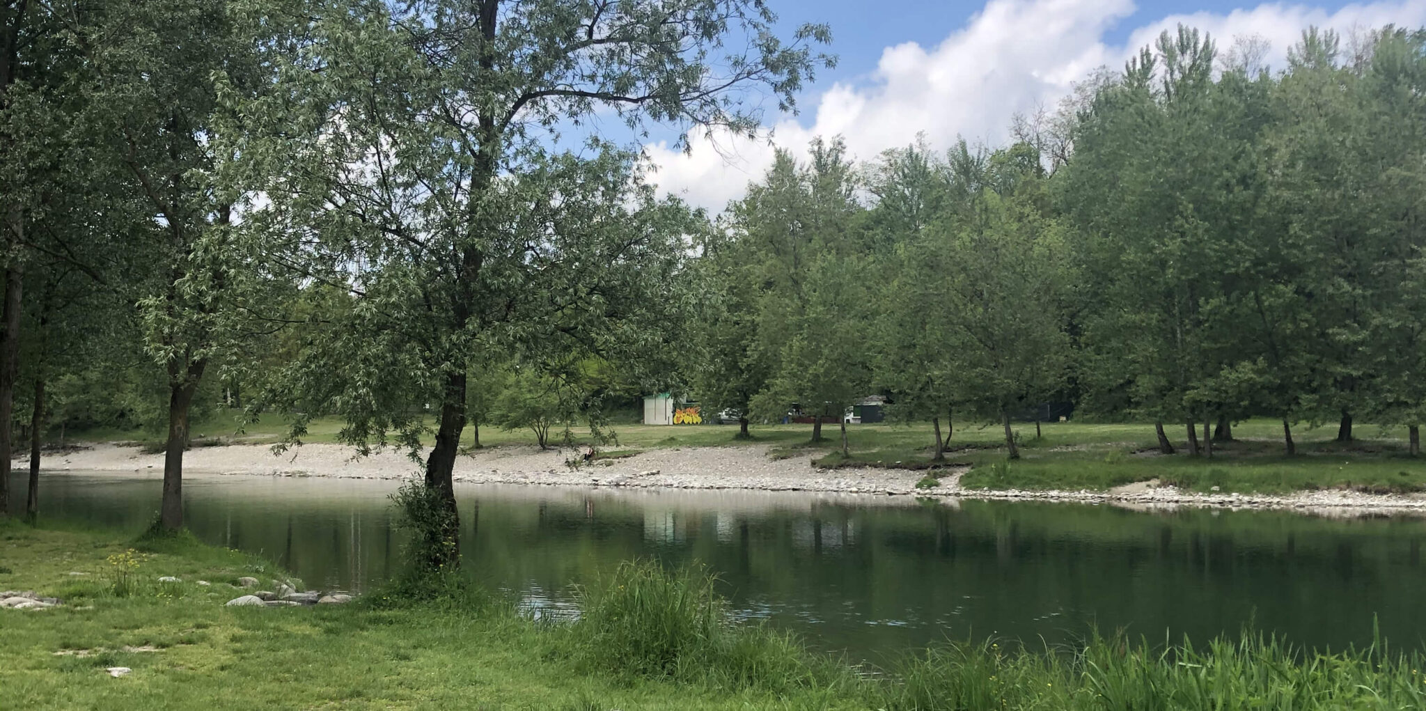 Semplici, essenziali e perfettamente integrate nel paesaggio, le piscinette sono un invito alla lentezza: qui il tempo si dilata tra il rumore dell’acqua che scorre e il fruscio delle foglie mosse dal vento, il biancheggiare dei fiori di aglio orsino, in primavera. Di fronte, sulla riva bergamasca, si distende la spiaggia di Medolago, a ricordare come il fiume, da sempre confine e collegamento, continui ad unire le comunità.