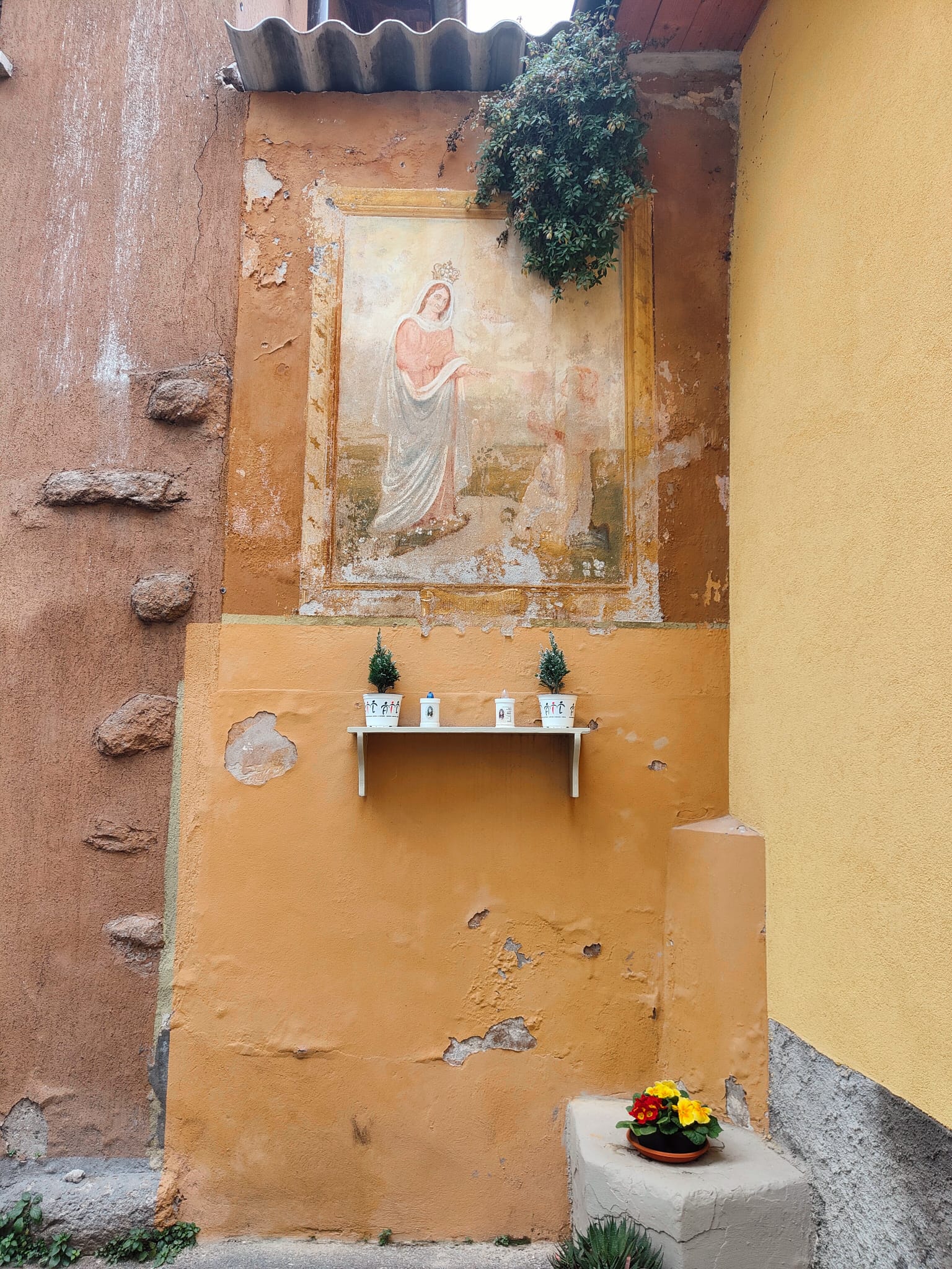 La devozione contadina si esprime spesso in gesti semplici ma intensi: ardere l’ulivo benedetto per allontanare la tempesta dal raccolto; invocare Giobbe, il Santo più paziente, sul laborioso allevamento dei bachi da seta. Questa religiosità ha spesso promosso piccole occasioni d’arte, come posare la statua di un Santo in una nicchia del cortile, perché, da lì, controlli e benedica le attività rurali; o come quando, nei casi più significativi, si commissiona ad artisti itineranti di affrescare un motivo sacro sul muro d’ingresso alla corte rustica.