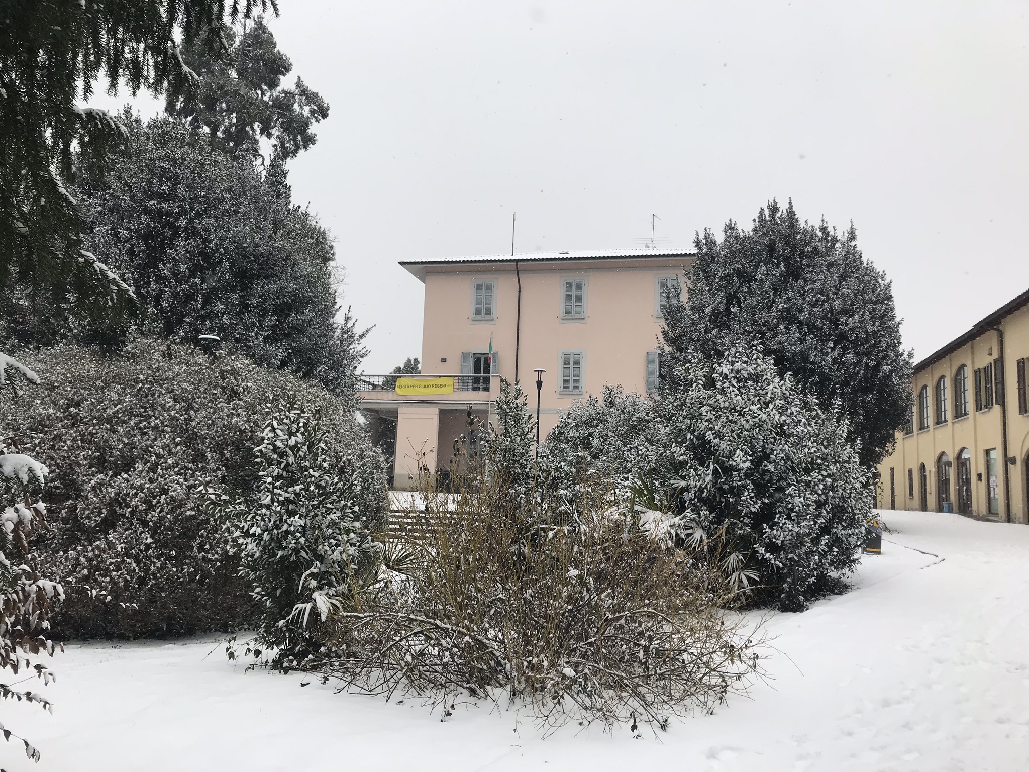Ad avvolgere l’edificio, un incantevole giardino si estende tra viali alberati, aiuole curate e scorci romantici, offrendo un rifugio di quiete e bellezza. Gli alberi secolari e l’equilibrio del paesaggio amplificano l’atmosfera di armonia che da sempre caratterizza questo luogo e dà in parte ragione del suo nome.