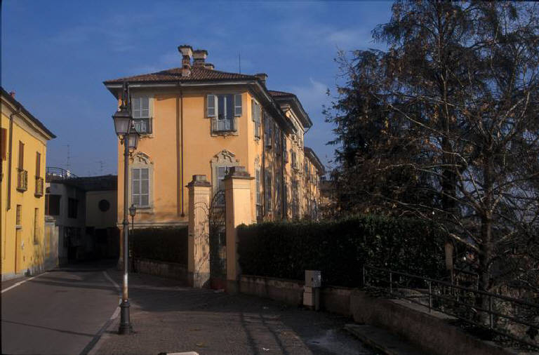 Adagiata come una signora d’altri tempi lungo le rive della Muzza, Villa Brambilla-Rosales vi si affaccia con compostezza scenografica: la sua scalinata gronda verso il canale, tenendo la campagna abduana come sfondo.